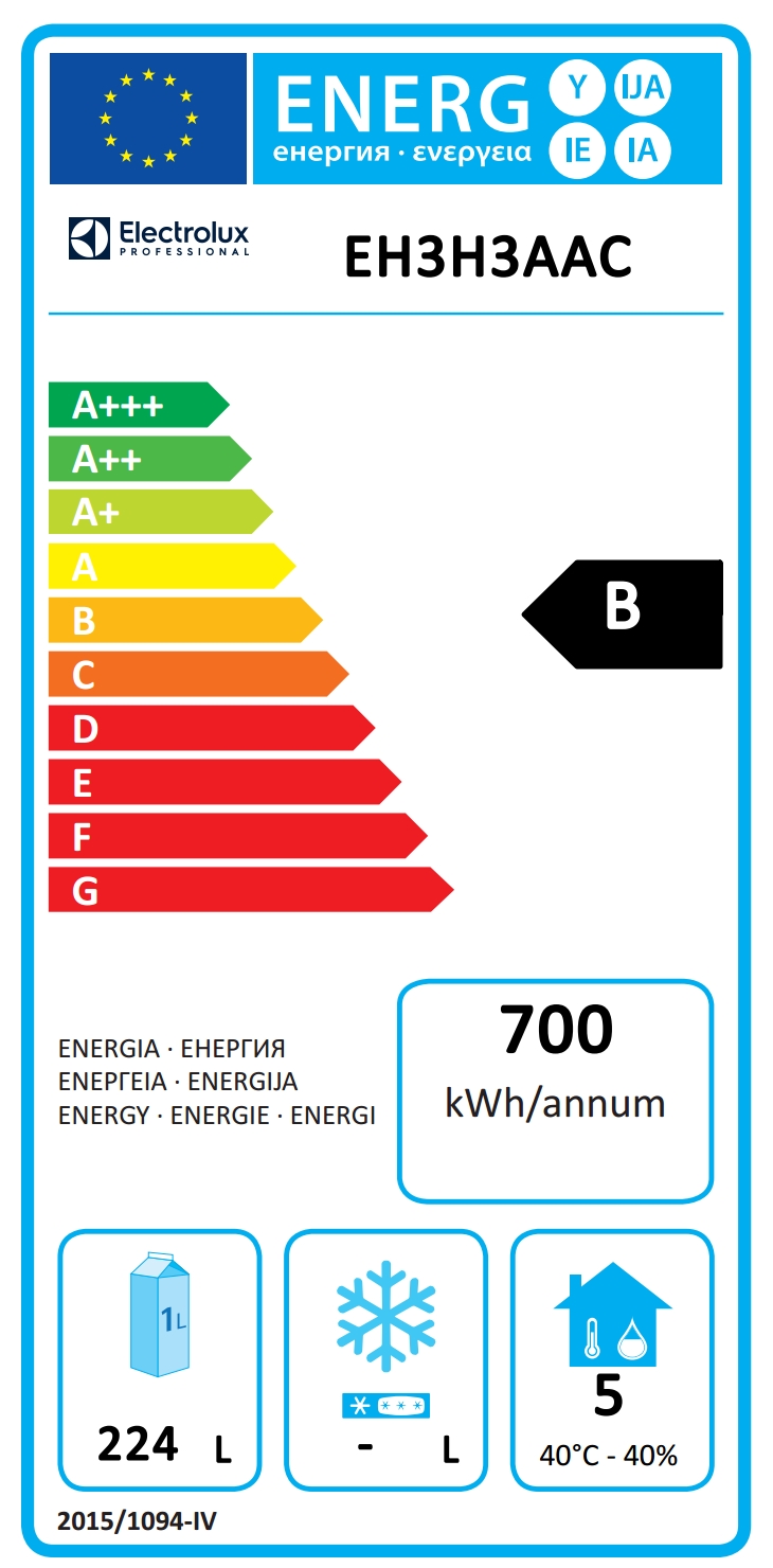 - Energikonsumtion/Energianvändning under 24 timmar (E24h): 700kWh/year - 1.92kWh/24h
