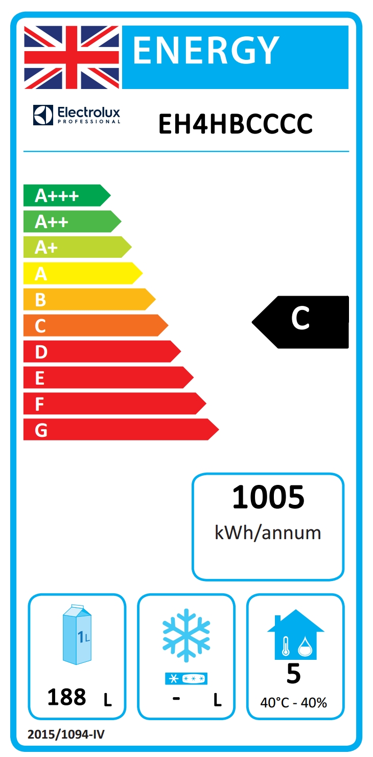 • Energikonsumtion/Energianvändning under 24 timmar (E24h): 1005kWh/year - 2.75kWh/24h