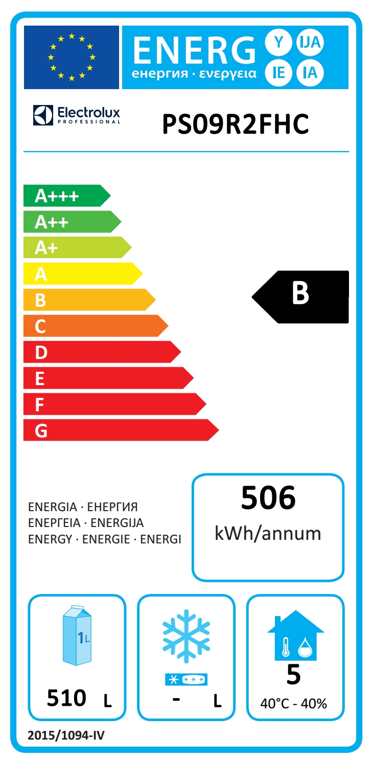 - Skåptyp EU Regulation (2015/1094): Högt kylskåp